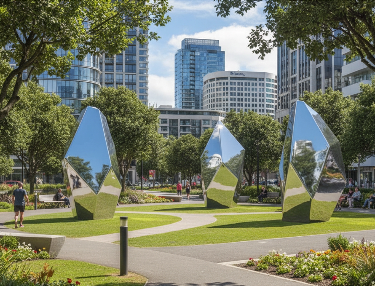 Полигональные фигуры и скульптуры их металла, арт-объекты, полигональная мебель, МАФ для благоустройства, мангалы и костровые чаши с доставкой по России.