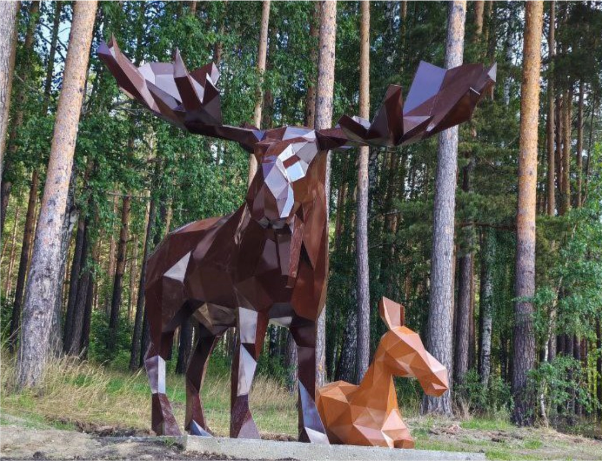Полигональные фигуры и скульптуры их металла, арт-объекты, полигональная мебель, МАФ для благоустройства, мангалы и костровые чаши с доставкой по России.