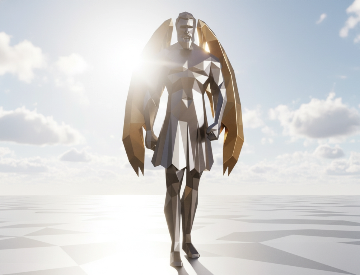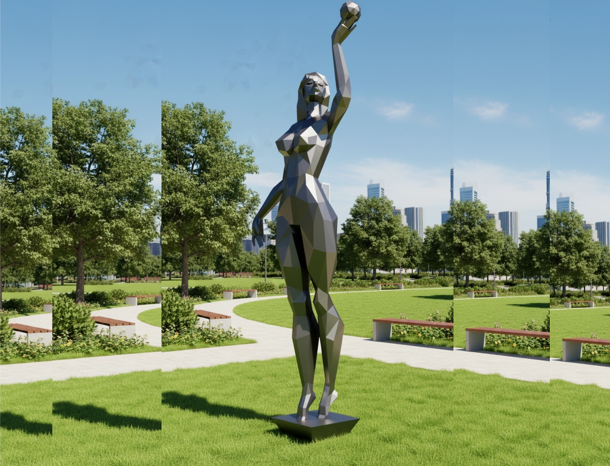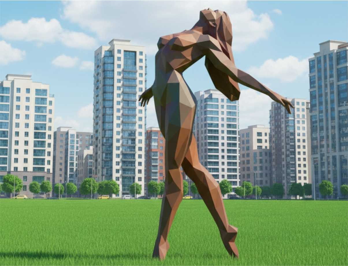 Представьте себе! Заходите вы в парк, а там... не просто скучные лавочки и унылые клумбы, а целая феерия!  множество геометрических фигур. Полигональный человек! И рядом с ним – еще один, и еще!