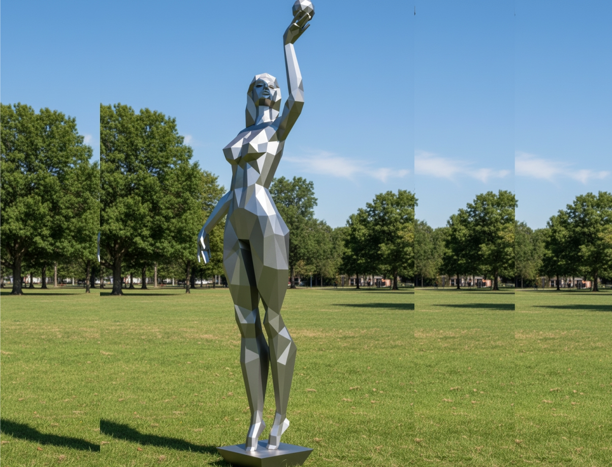 В парках, на площадях, в торговых центрах и офисных зданиях такие фигуры могут выступать в роли арт-объектов, скульптур или элементов ландшафтного дизайна. Металлические полигоны устойчивы к погодным условиям и долговечны, что делает их идеальными для улицы.
