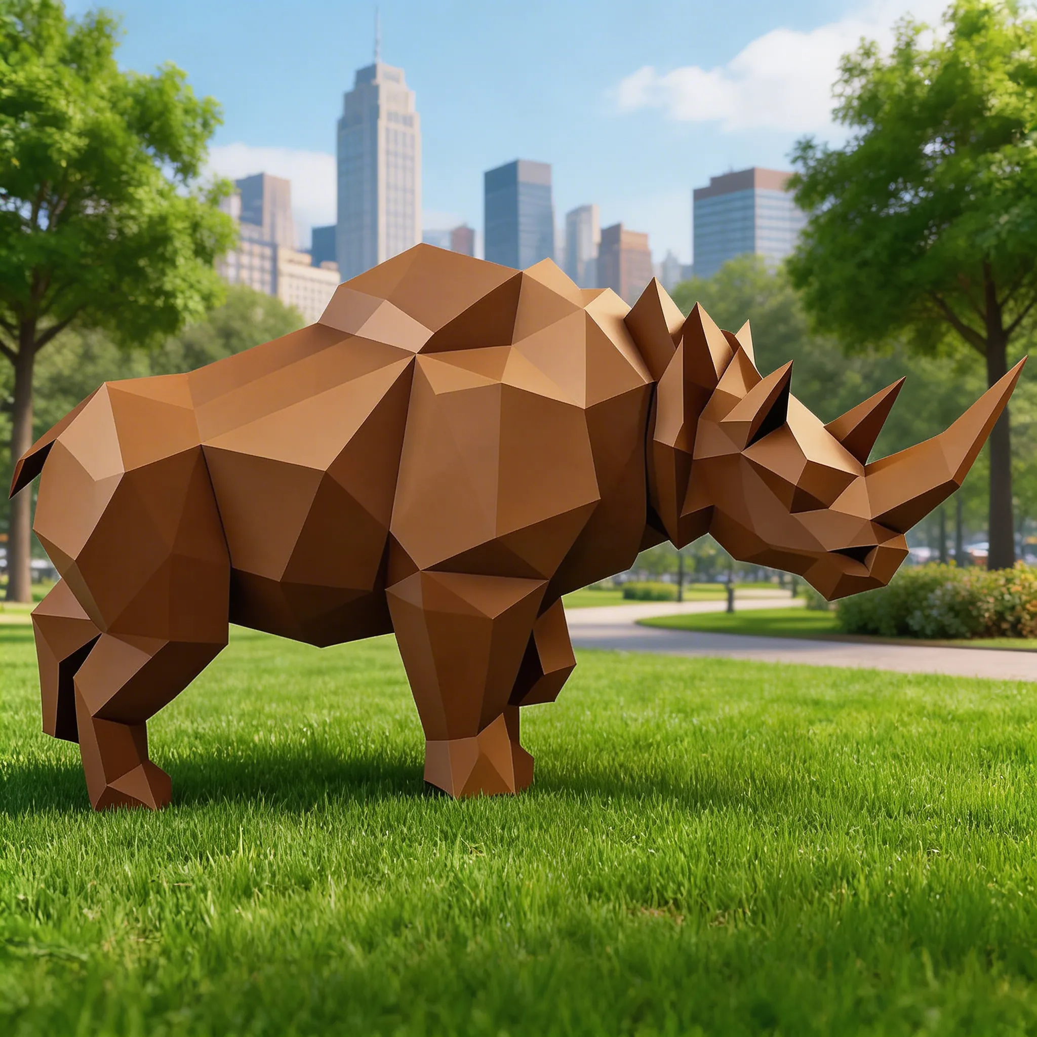 В парках, на площадях, в торговых центрах и офисных зданиях такие фигуры могут выступать в роли арт-объектов, скульптур или элементов ландшафтного дизайна. Металлические полигоны устойчивы к погодным условиям и долговечны, что делает их идеальными для улицы.