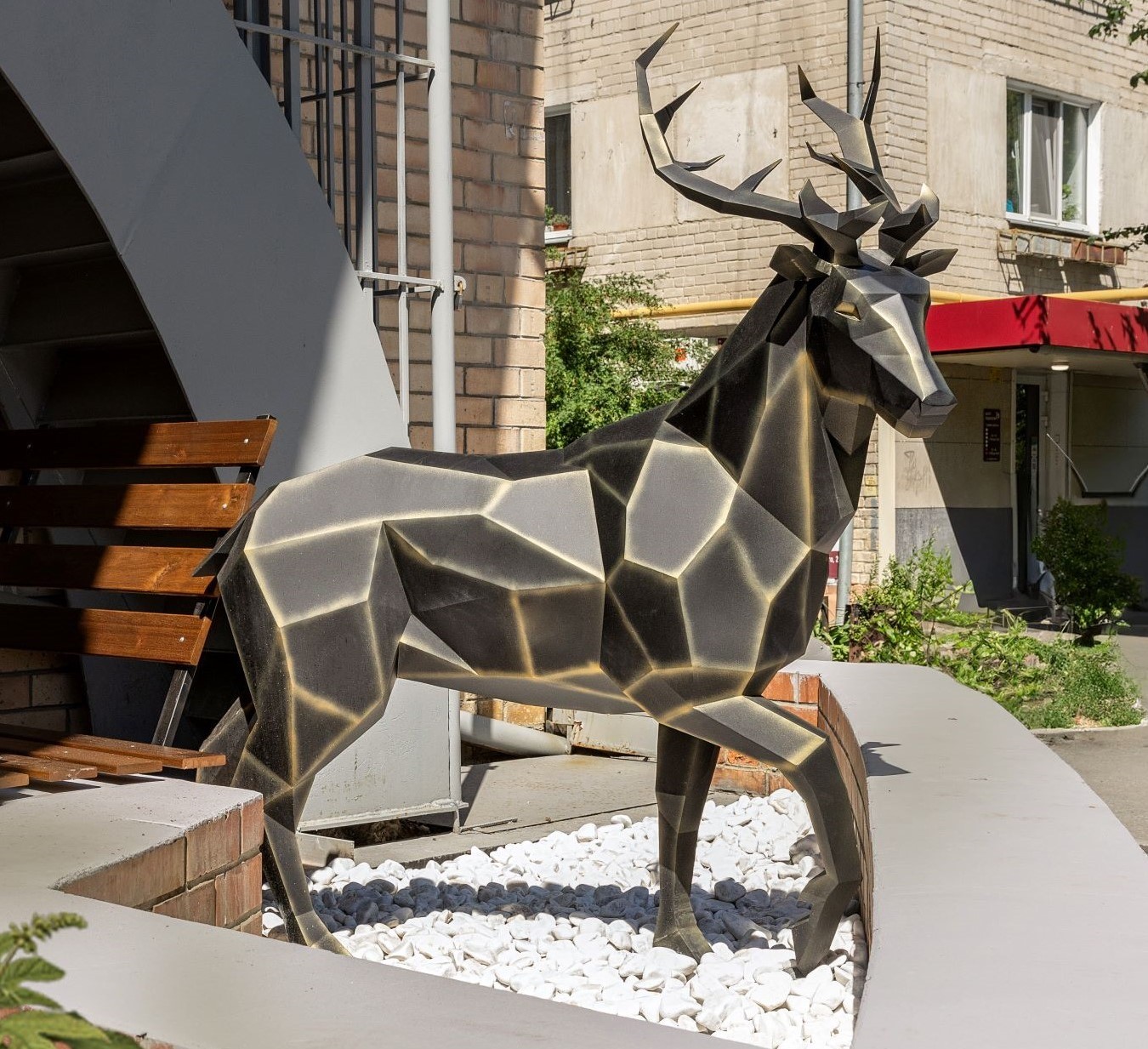 Полигональные скульптуры — это настоящее произведение современного искусства, сочетающее в себе эстетику и инновации. Купить полигональную фигуру «Олень» — отличный cпособ украсить пространство, будь то сад, парк или интерьер. В компании IronShape вы найдете разнообразие металлических фигур, выполненных с высокой точностью и качеством.