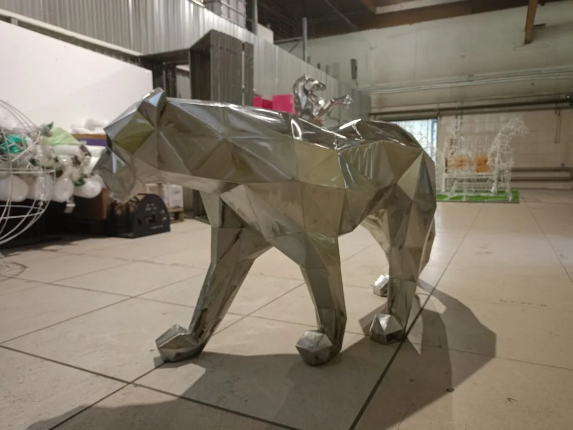 В парках, на площадях, в торговых центрах и офисных зданиях такие фигуры могут выступать в роли арт-объектов, скульптур или элементов ландшафтного дизайна. Металлические полигоны устойчивы к погодным условиям и долговечны, что делает их идеальными для улицы.